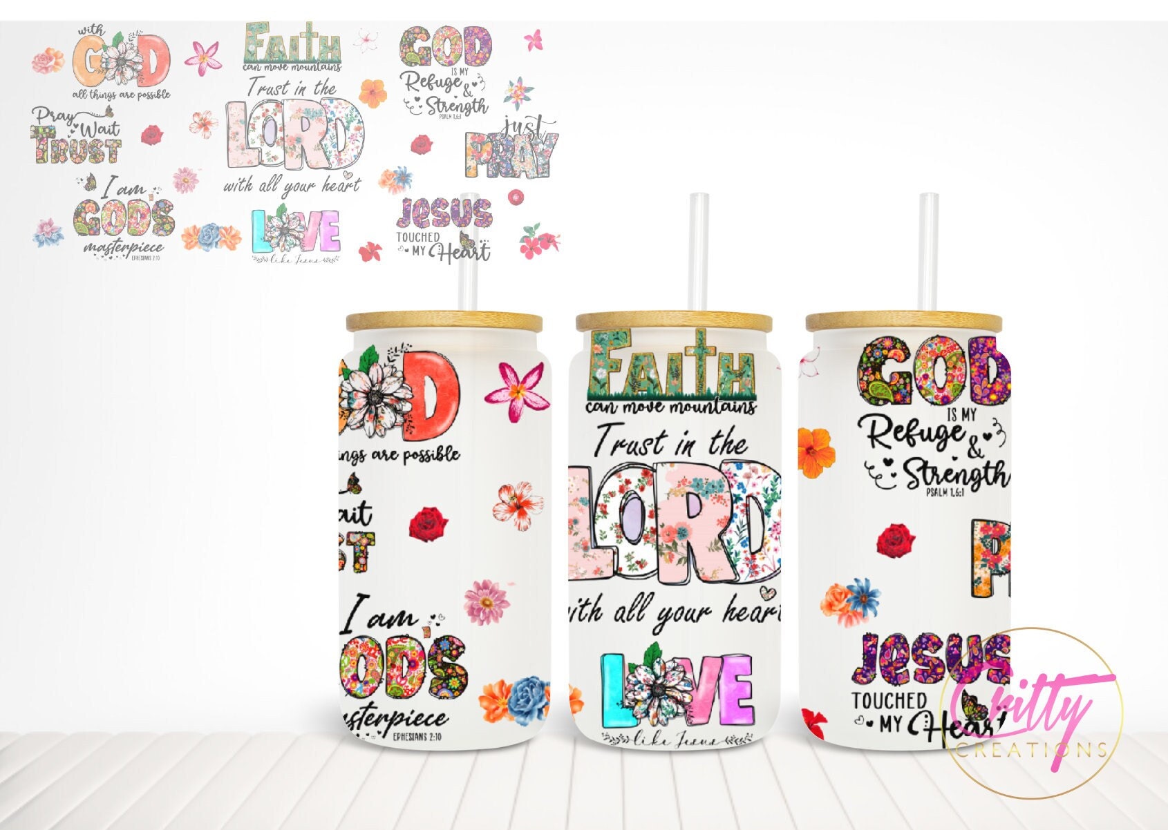 This listing is for one (1) UV DTF adhesive cup wrap for a 16oz Glass Cup size. (Cup not included)